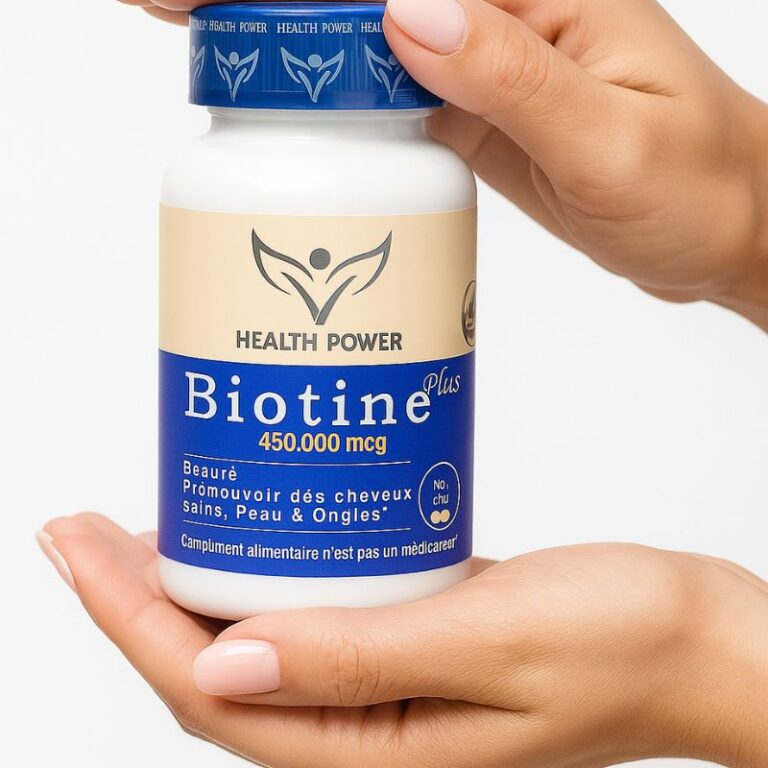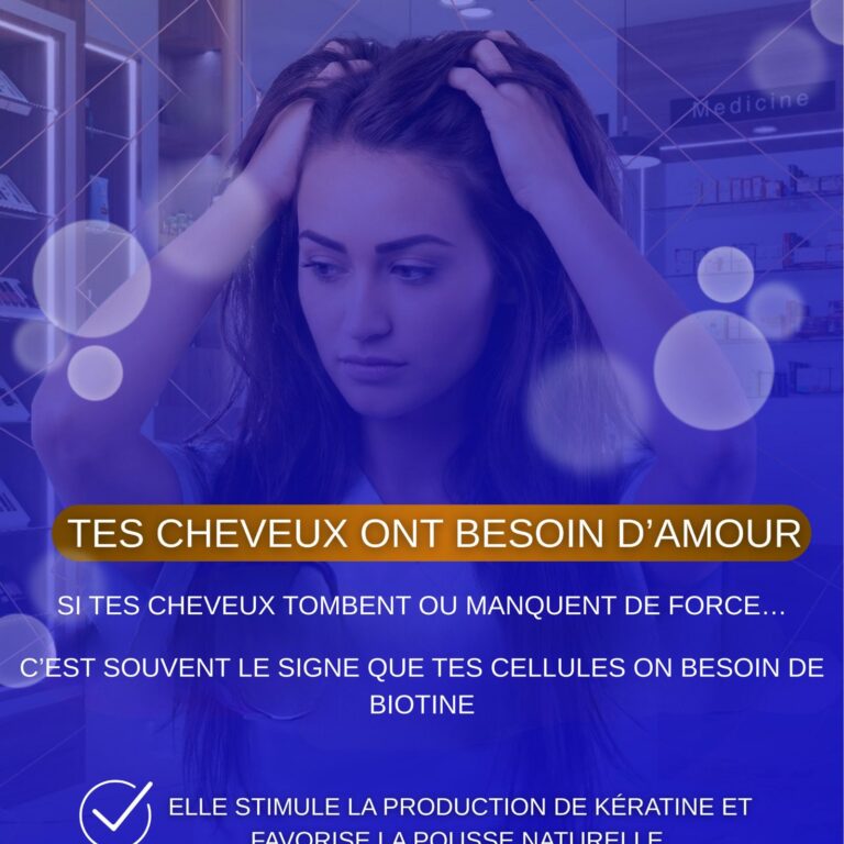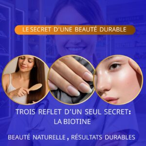 - ✨ Beauté de l’Intérieur : La Biotine nourrit le follicule pileux en profondeur, agissant directement sur la réduction de la chute des cheveux et l’amélioration de leur texture.